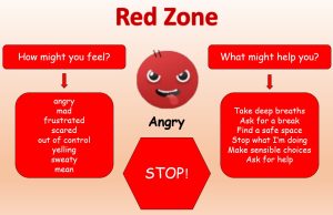 The red zone describes an extremely heightened state of intense emotions. When a person reaches the red zone, they’re no longer about to control their emotions or reactions.